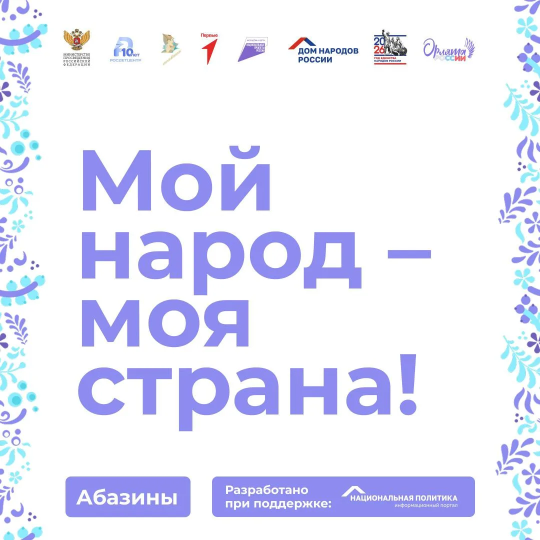 Мой народ – моя страна! На просторах России живёт более 190 народов, каждый со своей уникальной историей, языком и культурой. Совместно с Домом народов России открываем для вас рубрику «Мой народ – моя страна!», чтобы познакомиться с ними поближе. Каждый раз — новый народ и интересный факт о нём. Прямо сейчас читайте факты об абазинах и проверяйте свою интуицию и знания в нашем сообществе ВКонтакте Чтобы узнать ещё больше о народах, переходите в Энциклопедию народов России и расширяйте свои знания – clck.ru/3ReBvG