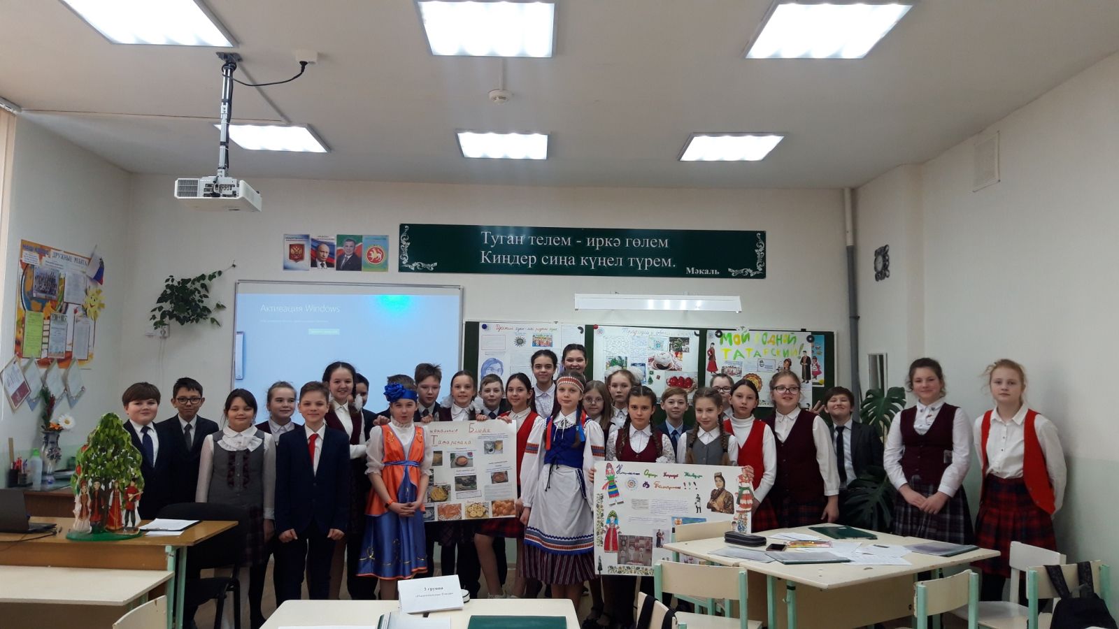 В рамках года родных языков и народного единства, в 7 классе (классный руководитель – Родионова Е.В.) прошла защита групповых проектов по теме «Многонациональный Татарстан». Целью данного мероприятия стала - культурологическое развитие учащихся в процесс познания исторических и духовных традиций, культур и языков народов Республики Татарстан. Ученики в группах подготовили мини-проекты о народах нашей республики, где отразили национальные костюмы, блюда, культуру, обычаи и традиции татар, чуваш и мордвы.