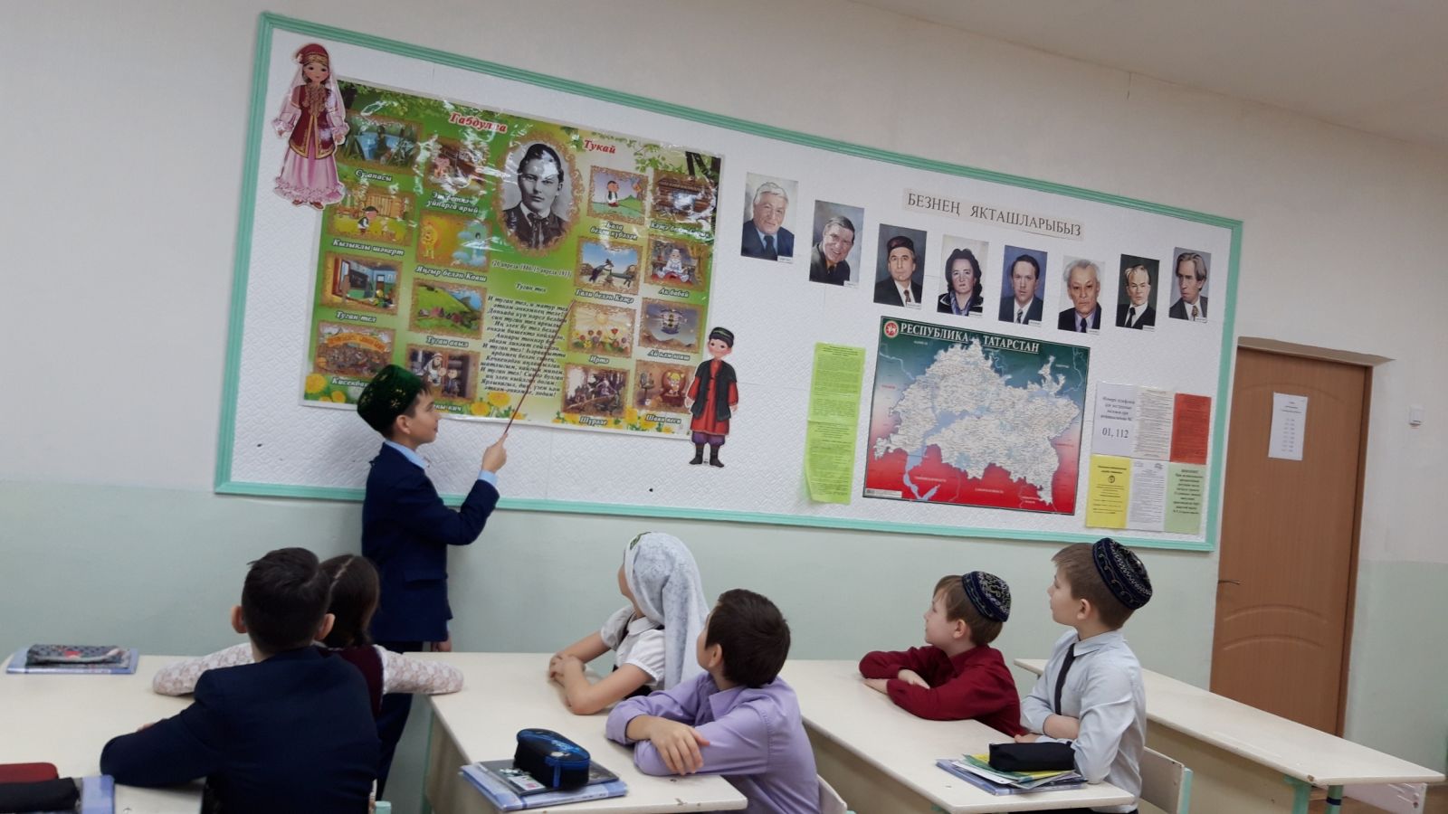 В рамках года родного языка и народного единства, учитель родного (татарского) языка Закирова В.Н. в 4 классе провела внеклассное мероприятие на тему: «Я люблю, тебя родной язык!». Учащиеся рассказывали стихи о красноречии родного языка и нравственности.