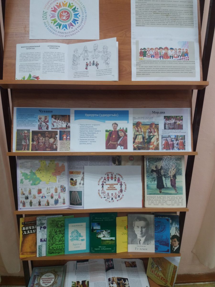 Библиотека лицея представила вниманию читателей книжную выставку, посвященную Году родных языков и народного единства в Республике Татарстан. Произведения местных поэтов и писателей на русском и татарском языках, энциклопедии, справочники, литература об особенностей языкового наследия народов республики- все это нашло здесь отражение.