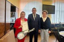 Начальник Юго -Восточного территориального управления министерства экологии и природных ресурсов Республики Татарстан Шайдуллин Ленар Равилевич вручил диплом директору лицея Светлане Султановне Клюевой.
