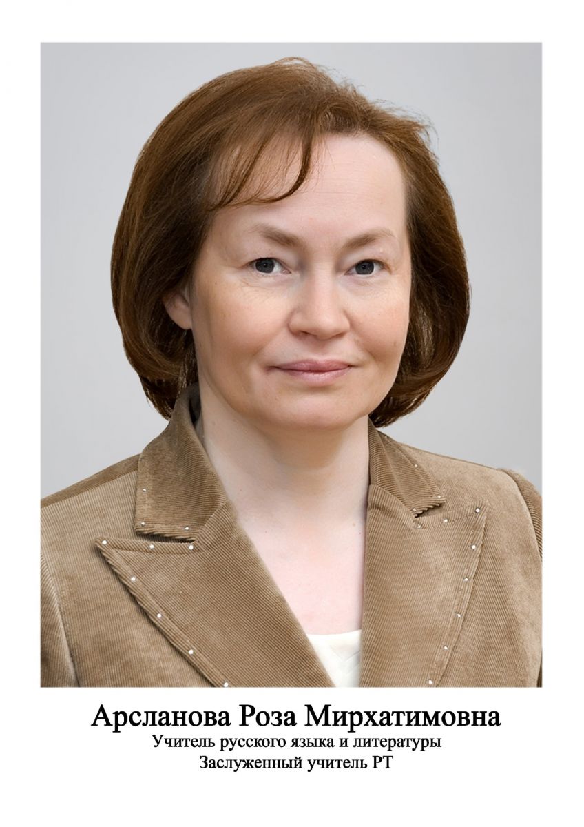 Внимание к слову, кропотливая работа над культурой речи, развитием словарного запаса учащихся характерны для этого талантливого и влюблённого в своё дело словесника. Достижения педагога отмечены по достоинству: 2 сентября 1998 года Указом президента Республики Татарстан за заслуги в области образования Арслановой Розе Мирхатимовне было присвоено почётное звание «Заслуженный учитель школы Республики Татарстан»