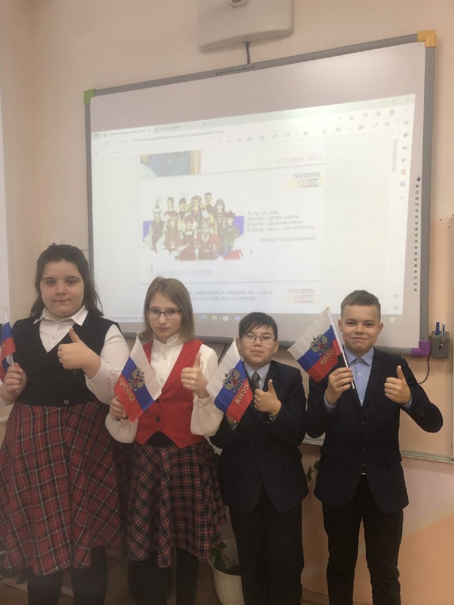 7.11 на очередном еженедельном занятии «Разговоры о важном» учащиеся 6 В класса (классный руководитель Куку Н.А.)читали стихотворения о России поэтов,выходцев из народов,населяющих нашу большую Родину.Такой формат занятия был посвящён событию,которое отмечалось 4 ноября-День воинской славы или День народного единства.Ребята также подготовили сообщения о традициях и обычаях,блюдах и костюмах народов,проживающих на территории России.Занятие позволило расширить знания по истории России, что в свою очередь влияет на формирование чувств патриотизма и на духовно-нравственное развитие учащихся.