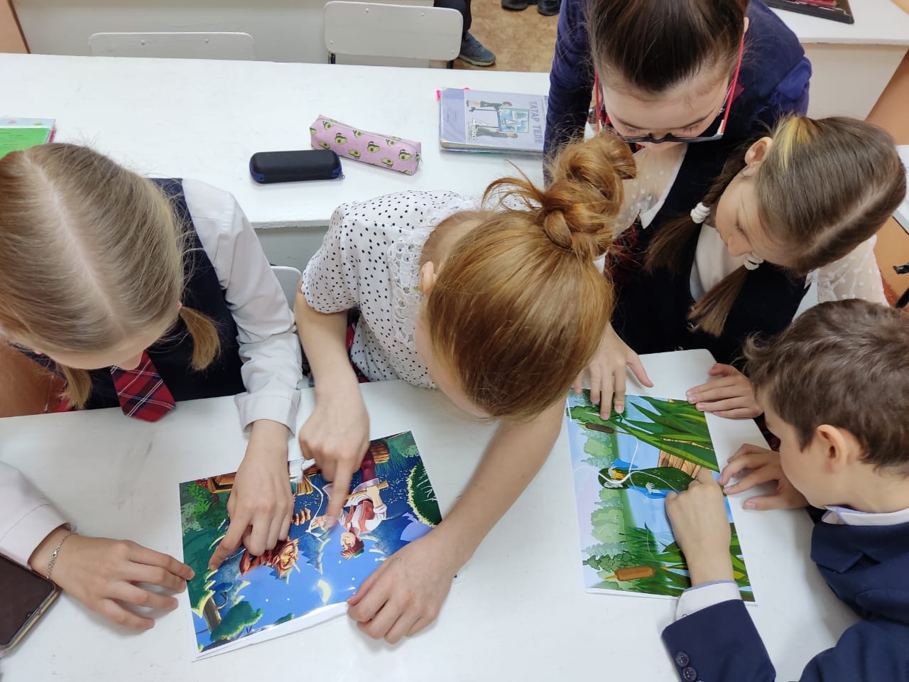 Бүген бездә кунакта Г. Тукай исемендәге Үзәк китапханәнең милли-туган якны өйрәнү бүлеге хезмәткәрләре. Алар 4 нче сыйныф укучылары өчен бөек татар шагыйре Г. Тукайның тууына 136 ел тулуга багышланган, «Тукай безнең йөрәкләрдә» дип исемләнгән әдәби чара уздырдылар.