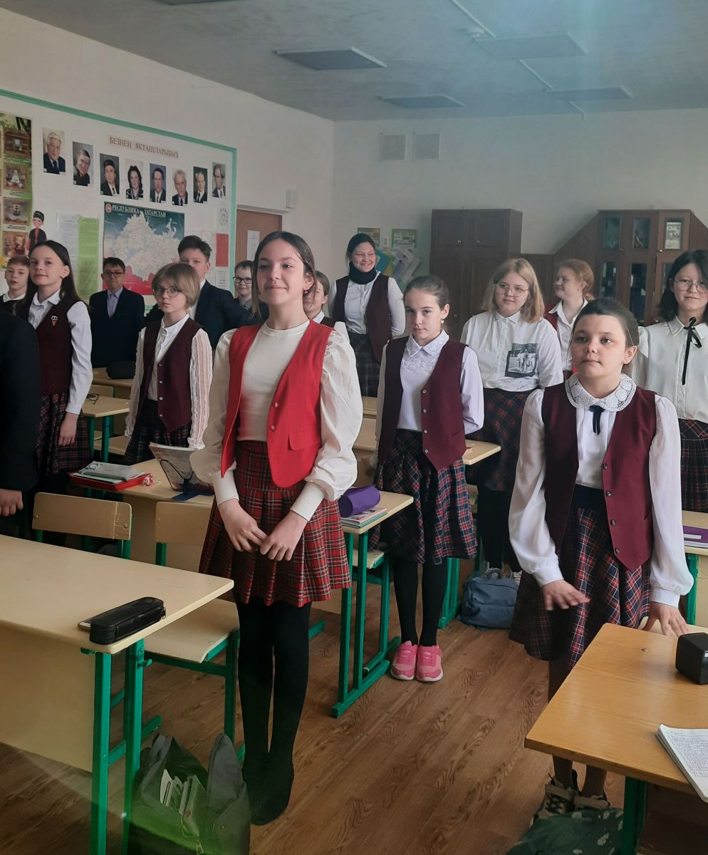 В 6В классе прошёл классный час, посвящённый символам РФ и РТ. По окончании классного часа учащимися был исполнен гимн РФ и РТ.