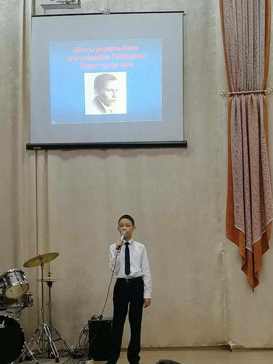 26 апреля – День рождения нашего любимого поэта Габдуллы Тукая. Он родился в самое прекрасное время года, в самый прекрасный весенний день, когда тают снега и льды, а на деревьях и кустарниках просыпаются почки. Габдулла Тукай прожил на свете всего 27 лет. Тем не менее, он оставил огромное духовное наследие. Мы провели вечер, посвященный ему. В мероприятии приняли участие учащиеся с 1 по 11 классы. Наши читатели продемонстрировали свои знания о любимом писателе, прочитали его стихи, спели песни. Вечер завершился песней «Туган тел».