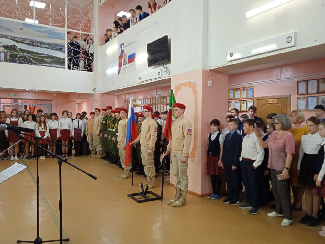 В целях исполнения поручения Президента Российской Федерации Владимира Владимировича Путина от 30 сентября 2021 года Приказ № 1845 «Об использовании государственных символов Российской Федерации в государственных и муниципальных общеобразовательных организациях», согласно решению заседания Межведомственной комиссии по историческому просвещению от 24 марта 2022 года и на основании Письма Министерства просвещения Российской Федерации № СК-295/06 от 15.04.2022 года сегодня в лицее прошла церемония выноса флагов Российской Федерации и Республики Татарстан.