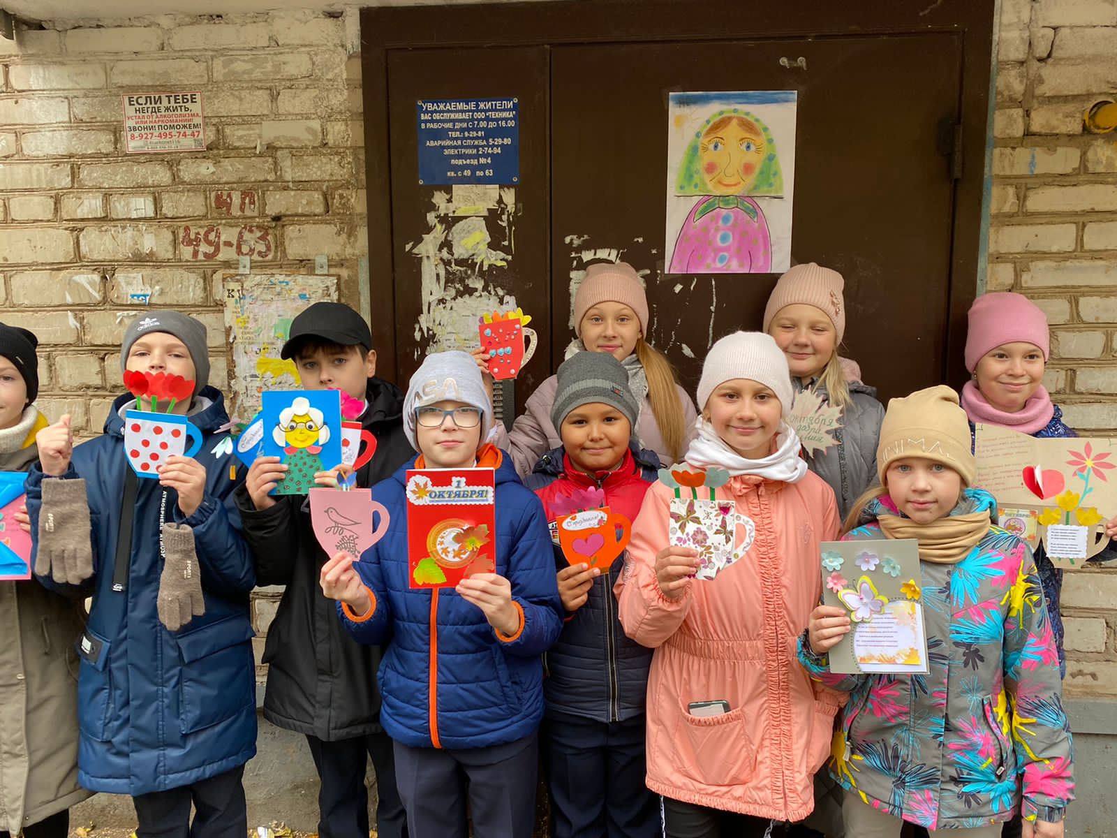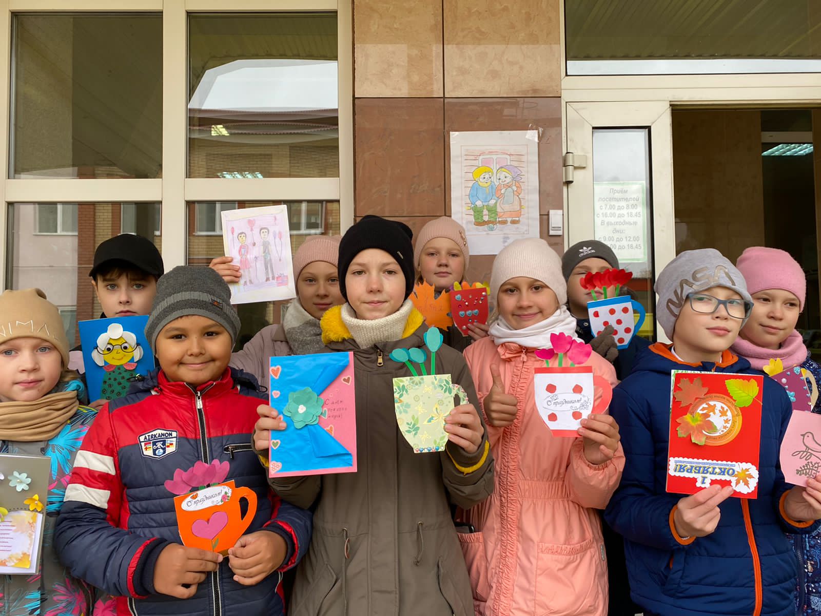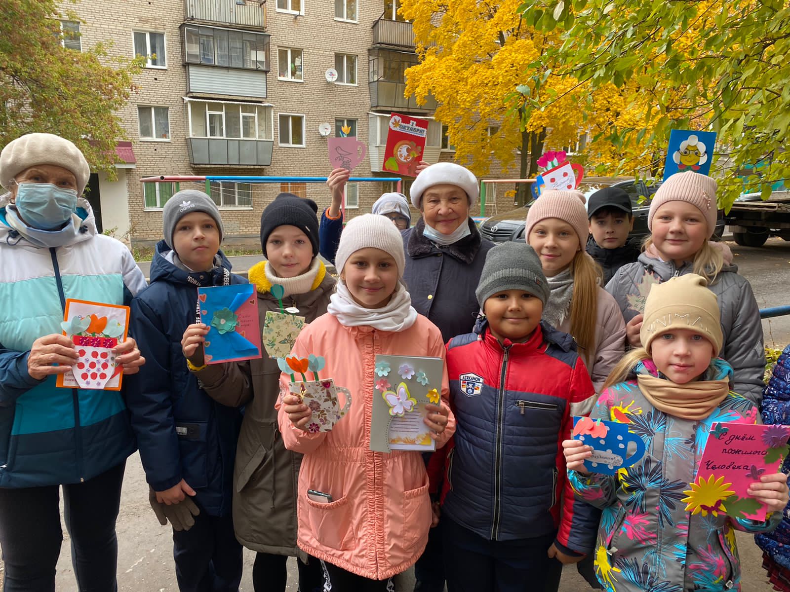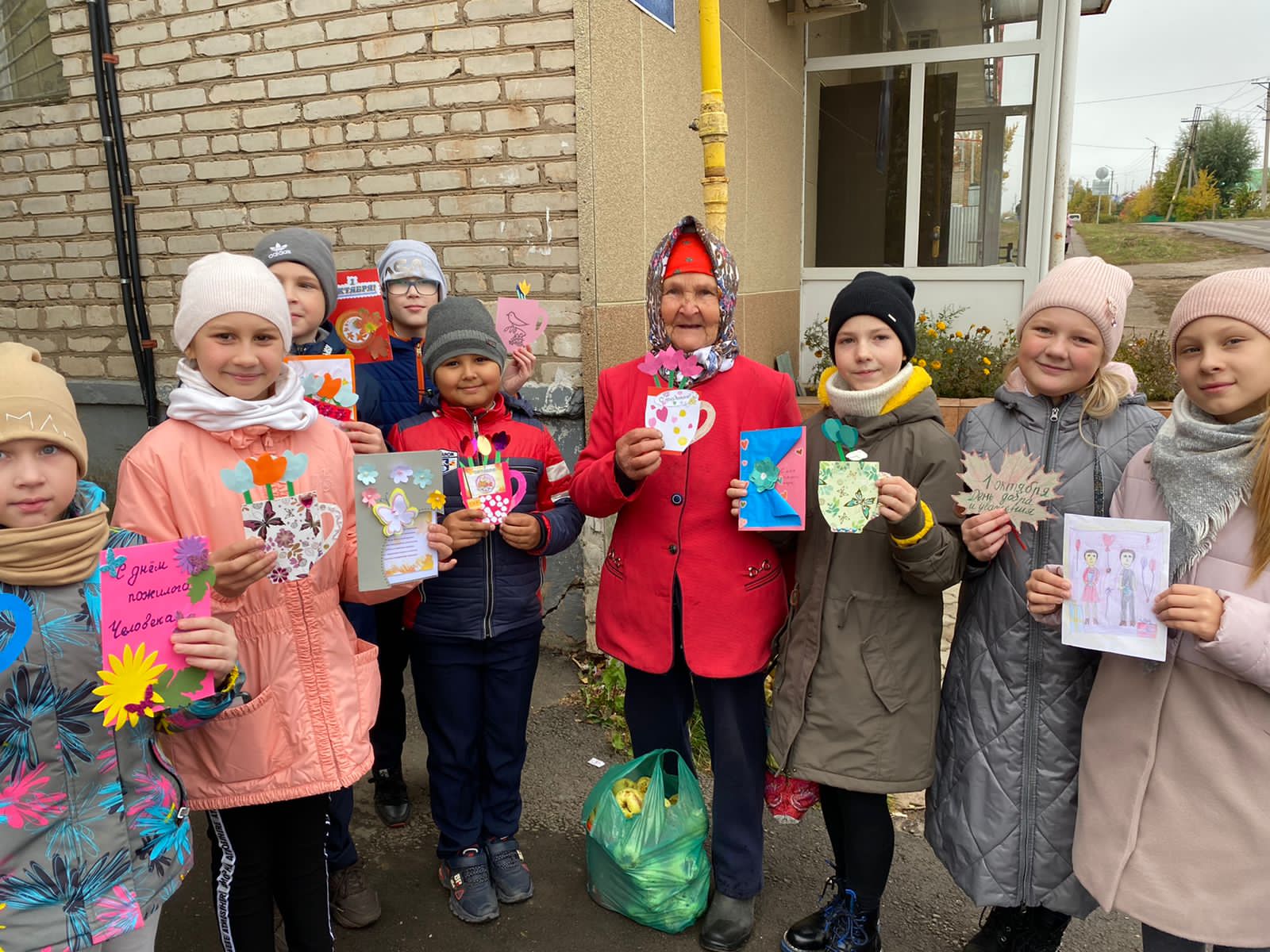 В День пожилого человека ученики младших классов разместили на дверях подъездов и магазинов поздравительные плакаты, сделанные своими руками. Так учащиеся выражают свою благодарность и уважение людям старшего поколения.