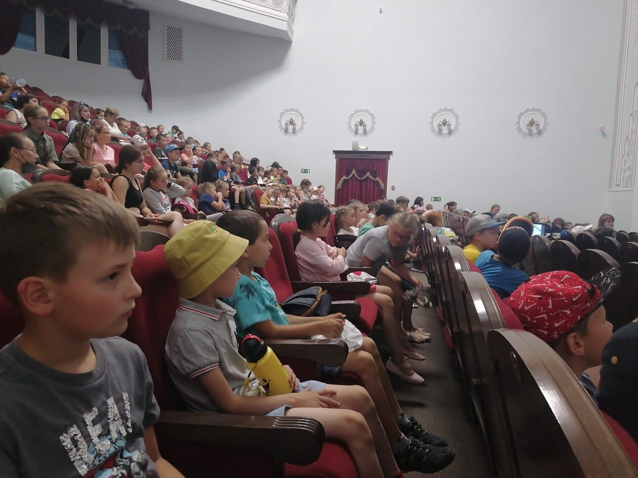 Сегодня в лагере прошел развлекательно-познавательный день. Ребята побывали в кинотеатре и посмотрели интересный мультфильм «Белка и Стрелка».