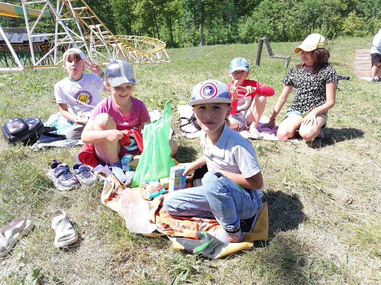 Жизнь в нашем лагере бьет ключом. Сегодня весь лагерь отправился в поход. Ребята с удовольствием провели время в лесопарке – играли в игры, плели веночки, катались на аттракционах. Дети устроили пикник и с аппетитом поели на природе. Все получили большой заряд энергии и удовольствия.