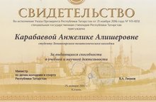 Поздравляем студентку 4 курса (группы 1.ЭМ.13) Карабаеву Анжелику Алишеровну с получением специальной государственной стипендией Республики Татарстан.