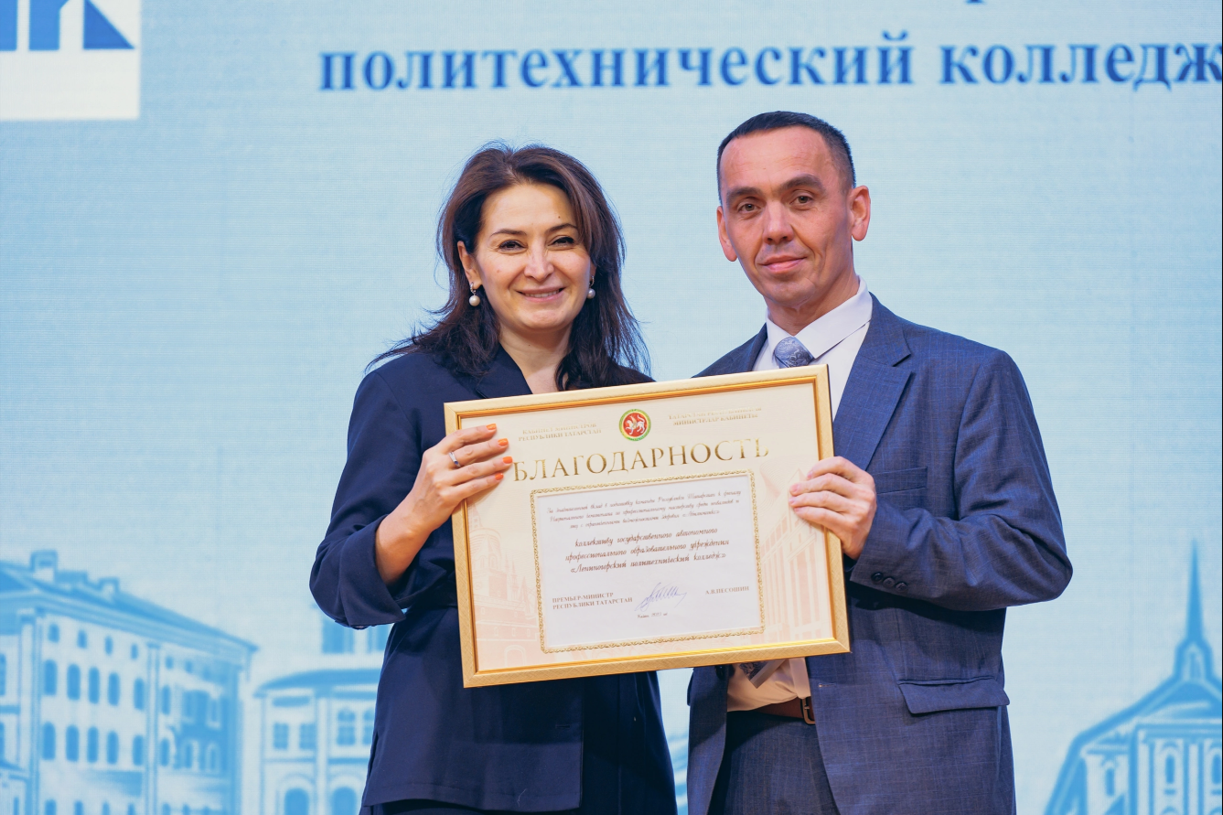В рамках указанной встречи прошла торжественная церемония награждения ГАПОУ «Лениногорский политехнический колледж» Благодарственным письмом Кабинета Министров Республики Татарстан.