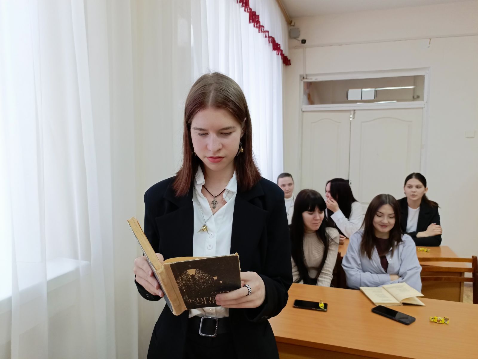 В преддверии этой даты в рамках реализации целевой программы «PROЧТЕНИЕ» в библиотеке прошло литературное признание «Я вновь читаю пушкинские строки…» Заведующая библиотекой Г. Н. Быкова сделала обзор книжной выставки, рассказала интересные факты из жизни великого поэта, познакомила с обстоятельствами последней дуэли Александра Сергеевича. Студенты приняли участие в литературной игре и вдохновились в поэтическом марафоне, читая бессмертные пушкинские строки.