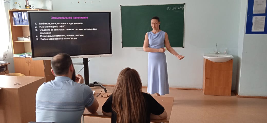 В рамках традиционной весенней Недели психологии 24 апреля 2024 года для преподавателей ГАПОУ "ЛПК" педагог-психолог колледжа Гаврилова Любовь Николаевна провела семинар по теме "Как сохранять состояние ресурса. И при стрессовых ситуациях".