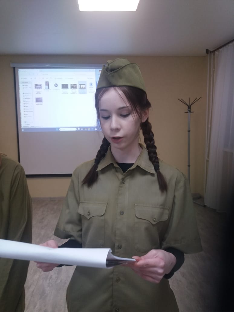 Открыла выступление воспитатель общежития Г.Н. Мясникова. Алина Шарипова рассказывала о хрупких, нежных девушек и женщинах, которые взвалили на себя тяжесть войны.