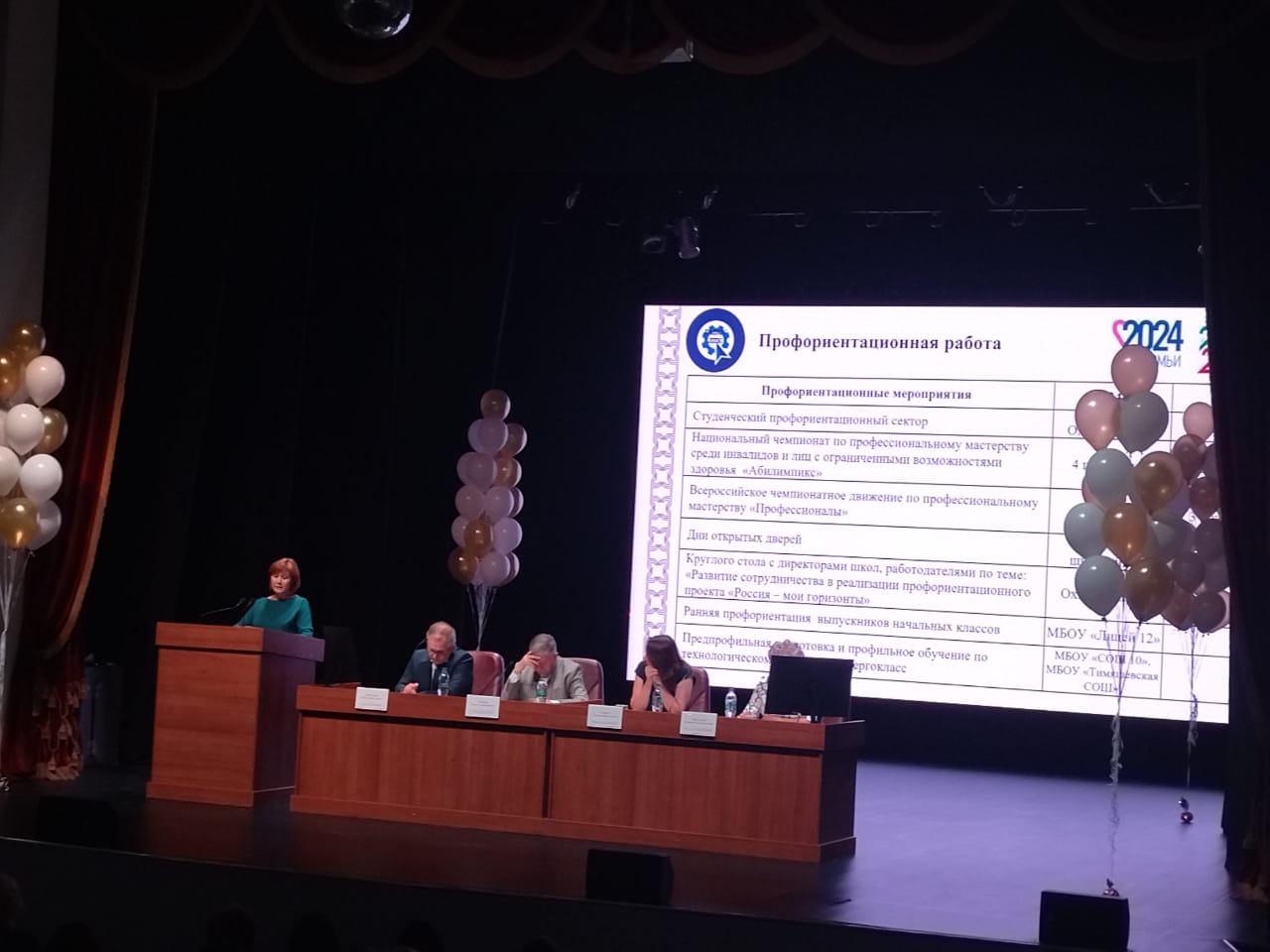 В ходе конференции рассматривались актуальные вопросы профессиональной ориентации, повышения качества и доступности образования, создания образовательного, развития профессионального образования. Содокладчиком начальника Управления образования Лениногорского района выступила заместитель директора по учебно-производственной работе Гараева Л.В. коснулась вопроса профориентационной работы колледжа и целевого обучения.