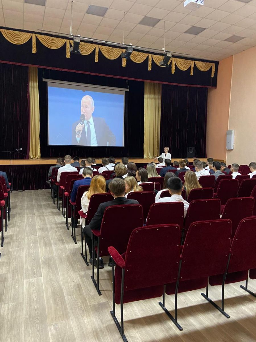 Для студентов второго и третьего курсов состоялось занятие "Образ будущего" в рамках проекта "Разговоры о важном". Студенты были приглашены к размышлениям о будущем, просмотрев видеообращение Президента Российской Федерации В.В. Путина, который поздравил с началом учебного года. Участники "построили" основу собственного счастливого будущего, заполнив анкету "5 факторов счастья". Они вдумчиво рассуждали о том, как знания могут развивать выбранную профессию и какие пути откроются для достижения личных и общих целей, призванных способствовать процветанию страны.