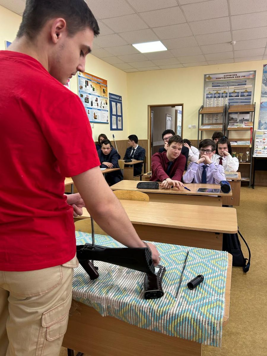 В рамках проведения предметной недели по физической культуре и ОБЗР, 26 февраля была проведена показательная разборка/сборка автомата Калашникова для группы ТМ.24. Юнармеец колледжа Хисамов Арслан рассказал о правилах разборки/сборки АК-74, показал последовательность. Так же объяснил для чего важно это умение, и как оно может пригодиться в жизни. Студенты группы ТМ.24 под руководством Юнармейца попробовали выполнить разборку/сборку автомата Калашникова.