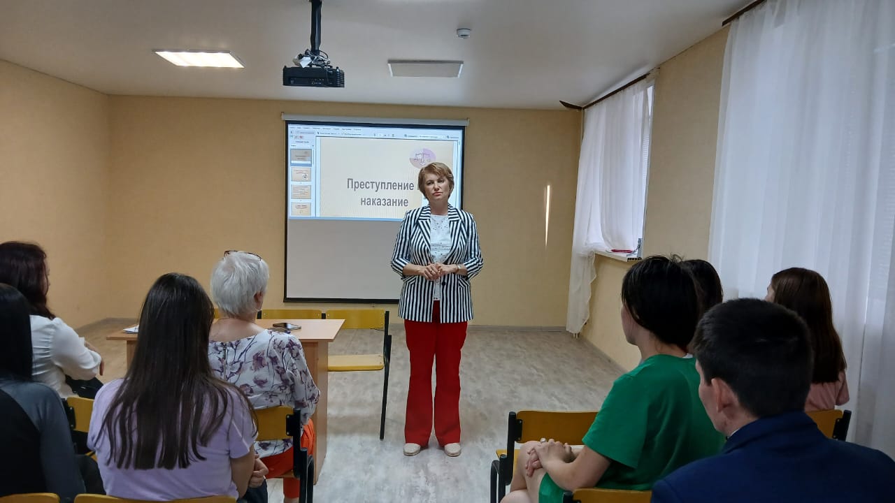 Член совета общежития Фирдаус Рахманкулова представила презентацию на тему "Преступление и наказание", объяснив виды наказаний для несовершеннолетних. В завершение собрания участники получили сладкие подарки за активное участие в жизни общежития и соблюдение порядка в комнатах.