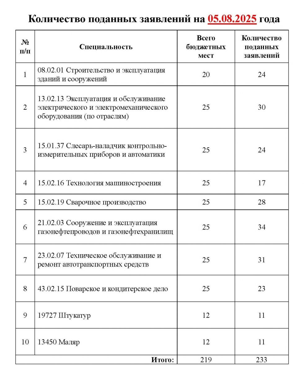 Информация по заявлениям на поступление 2025-2026 учебный год
