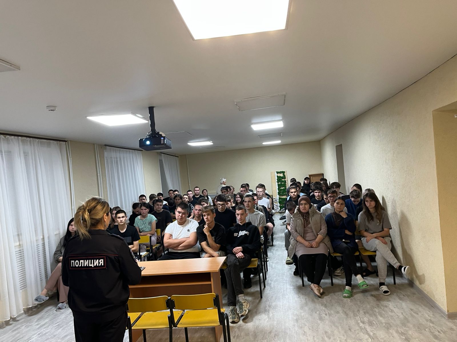 18 сентября в актовом зале общежития колледжа прошла встреча со старшим инспектором по делам несовершеннолетних ОУУП и ПДН отдела МВД России по Лениногорскому району майором полиции Юлией Кадямовой.