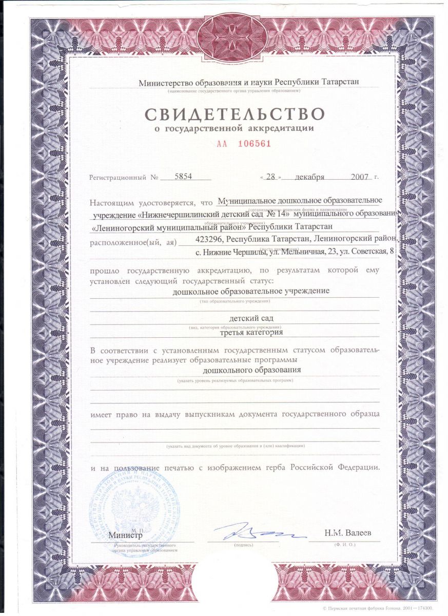 Свидетельство о гос аккредитации