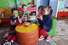 И сегодня с воспитанниками разновозрастной группы провели игру на бытовую тему "В гостях"