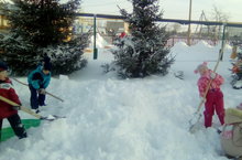 В преддверии Нового года по муниципальному району был объявлен конкурс на лучшее новогоднее оформление. Для участия в данном конкурсе сотрудники детского сада, а также воспитанники начали строить фигурки из снега.