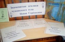 Сегодня в детском саду оформили выставку по теме "Знаменитые земляки чувашского села Новое Сережкино". Были выставлены картины местного художника Ванюкова Юрия Николаевича, книга местной поэтессы "Путь к себе" Саушкиной Антониды Александровны , а так же их биографии и биографии участников ВОВ Саукова Тимофея Демьяновича и Ванюкова Александра Ефимовича.