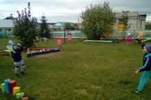 С целью знакомства и обучения спортивной игры "Бадминтон"в старшей группе провели на свежем воздухе занятие.