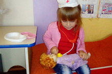 Сегодня, воспитанники детского сада играли в сюжетно-ролевую игру "Больница". В ходе игры у них расширилось представление о труде работников больницы, формировалось умение применять в игре полученные ранее знания об окружающей жизни.