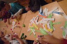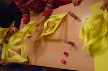 Мастерская Деда Мороза.. 13.12.2016 Изготовление Новогодней гирлянды из цветной бумаги (которую сами покрасили).