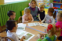 Библиотекарь сельской библиотеки знакомила с новыми детскими книгами. Дети с интересом рассматривали книги, просили прочитать.
