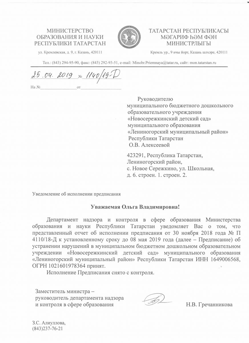муниципальное бюджетное дошкольное образовательное учреждение "Новосережкинский детский сад" МО "ЛМР" муниципального образования "Лениногорский муниципальный район" РТ