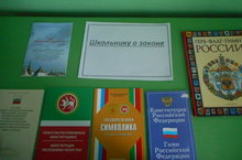 Сегодня библиотекарем школы Алексеевой О.В. была организована выставка книг в библиотеке под названием "Школьнику о законе"
