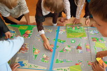 Саушкина Г.В., учительница начальных классов с учащимися 2,3 классов провела практическое занятие по ПДД. Она организовала настольную игру "Я-водитель".