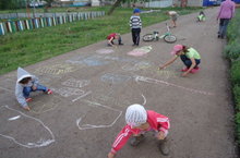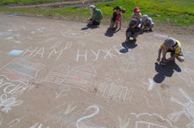 20 июня в пришкольном лагере "Улыбка" провели День художника. Дети рисовали на асфальте на свободную тему.