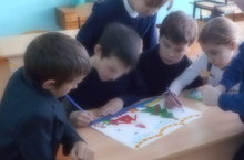 Учащиестя начальных классов на предметной неделе выпустили сюжетную стенгазету с использованием геометрических фигур.
