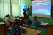 Член антикоррупционной комиссии школы Саушкина А.А. провела беседу о коррупции с учащимися 7-8 классов. В ходе беседы с использованием презентации было раскрыто понятие "коррупция", её причины, проведено анкетирование. Учащиеся привели примеры коррупции из изучаемой литературы, высказались о методах борьбы с коррупцией.