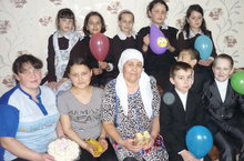 “Балаларга кояш бүләк ит” акциясе кысаларында 3 сыйныф укучылары, сыйныф җитәкчеләре Ганиева Г.Ә белән сыйныфташлары Камалтдинова Гөлия өендә булдылар. Бу күп балалы гаиләдә татулык, үзара җылы мөнәсәбәтләр хөкем сөрә. Әтиләре Наил - читкә йөреп эшли, әниләре Альбина - кибеттә сатучы. Алия - 6 сыйныф, Гөлия – 3 сыйныф укучылары, ә кечкенәләре Илсөяр балалар бакчасына йөри. Дәү әниләре – Әнвәрия апа оныкларны барлап , җылы карашы, тәмле ризыклары белән оныкларын, балаларын куандырып тора. 3 сыйныф укучылары балаларга конфетлар, шарлар тараттылар, ишегалдында хәрәкәтле уеннар уйнадылар. Соңыннан дәү әниләре пешергән коймак белән бергәләп чәй эчтеләр.