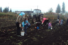 Мәктәптә үзебез үстергән уңышны җыю башланды. Бәрәңге уңышын җыюда 5-9 сыйныф укучылары тырышып эшләделәр. Җәйге практикада тырышып эшләгәч бәрәңге мул булды. Бәрәңге алуда шәхси тракторы белән бәрәңге казырга ярдәм итүче Вафин Әкъдәс абыйга зур рәхмәт белдерәбез.