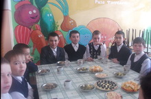 5 сыйныф кызлары һәм сыйныф җитәкчеләре Вафина В.М. Ватанны саклаучылар көне уңаеннан сыйныф егетләренә бәйрәм үткәрделәр. Булачак солдатларны котлап матур теләкләр, җырлар башкардылар. Бергәләшеп чәй табыны артында кыюлык турында мәкальләр әйтешү тагы да кызыклы булды.