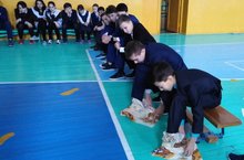 Оборона масса айлыгы кысаларында укучылар портянка бәйләү тәртибен сынап карадылар.