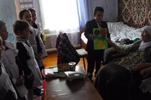 1 октябрь көнне, 5 сыйныф укучылары, Вахитова Фатыйма әбигә өлкәннәр көне белән котларга бардылар. Ул 1941 елны туган. Аның балачагы сугыш елларына туры килгән, кечкенәдән киң кырларда эшләгәнен, ашарга ризык булмавын елый-елый исенә төшерде. 8-че сыйныфны бетергәч, кинооператорга укыган, авылда күп еллар халыкка кино күрсәткән. Соңыннан укучыларга үзенең киңәшләрен бирде, теләкләр теләде, садака таратты. Без дә апага исәнлек, шатлык, куанычлар теләп калдык.