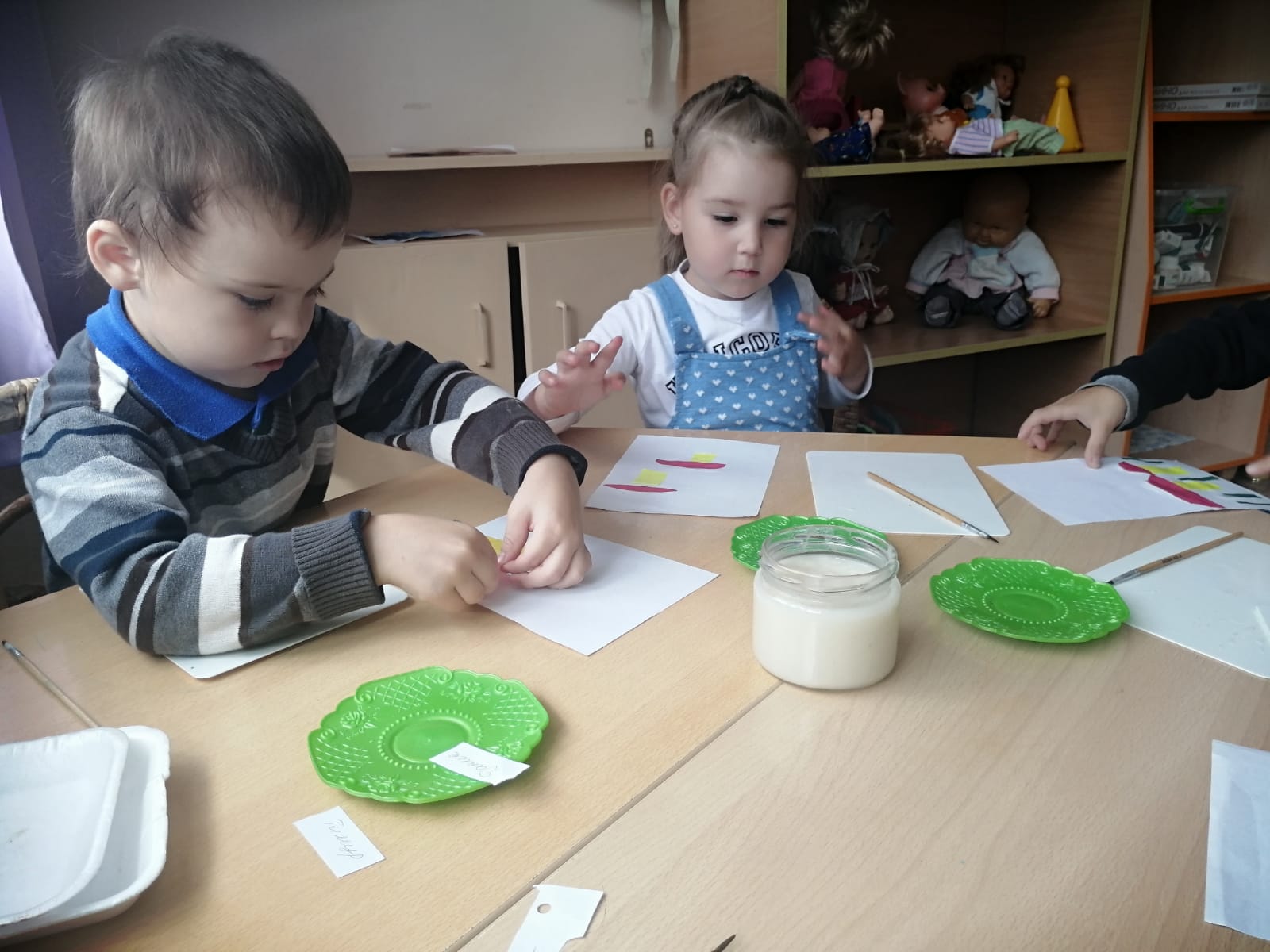 - развитие образного мышления (особенно в средней группе, когда малыши начинают выполнять аппликации не только по образцу, но и опираясь на собственные идеи — так называемые задания на «свободные темы»);