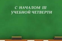 Поздравляем Вас с началом третьей четверти! Желаем коллегам - творческих успехов; родителям - терпения; ученикам - хороших отметок и прочных знаний.