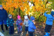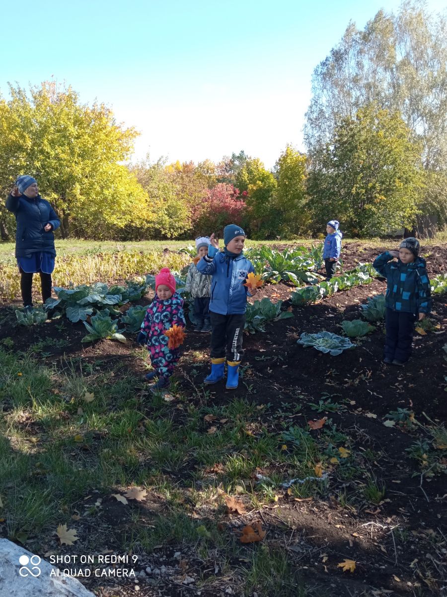 Сегодня воспитанники детского сада проводили занятия на свежем воздухе по тематике : "Золотая осень". С интересом слушали воспитателя, собирали дары осени и желтые листья.