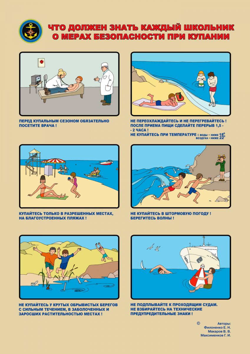 - При купании в незнакомой воде не заплывайте далеко: Не заплывайте за буйки и ограждения.