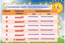 Сегодня на уроке русского языка мы учились склонять имена прилагательные мужского и среднего рода в единственном числе. Тема сложная , но учительница нашла способы чтобы просто и доступно объясниить это учащимся 4 класса. Надеемся что в данной теме пробелов в будущем не будет