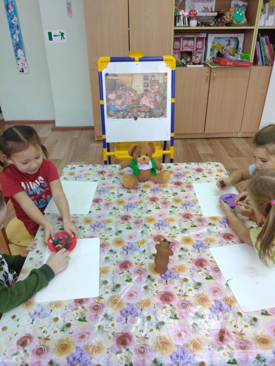 Руки долго нужно мыть!Занятия по лепке из пластилина прошли сегодя в нашем детском саду. Понравилась сказка "Три медведя" Вот и решили вылепить медведя с орехами. Старшие лепили медведя , ну , а мы малышки , лепили горошки и орешки для медведя. Очень интересно прошло занятие. Все просто молодцы.